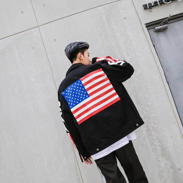 2018 autumn dress couple jeans cowboys and men Korean version BF hooded sweater jacket Flag of the United States US M-2XL
