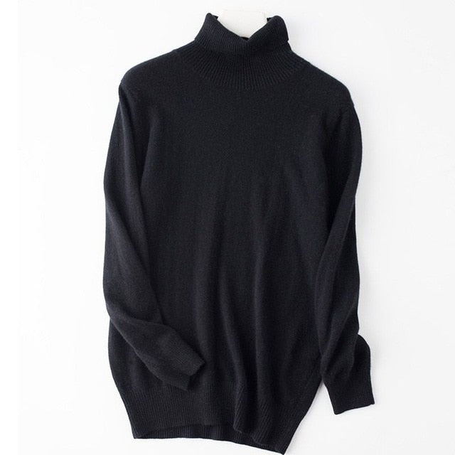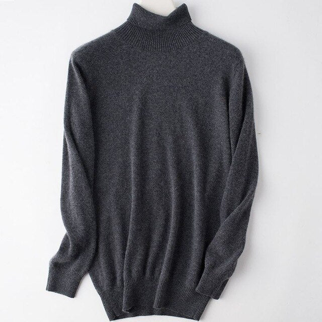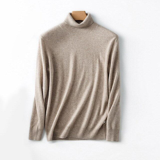 2019 Hot Selling Men's Turtleneck 100% Goat Cashmere Sweaters Solid Color Turn-down Collar Pullovers Cashmere Jumpers